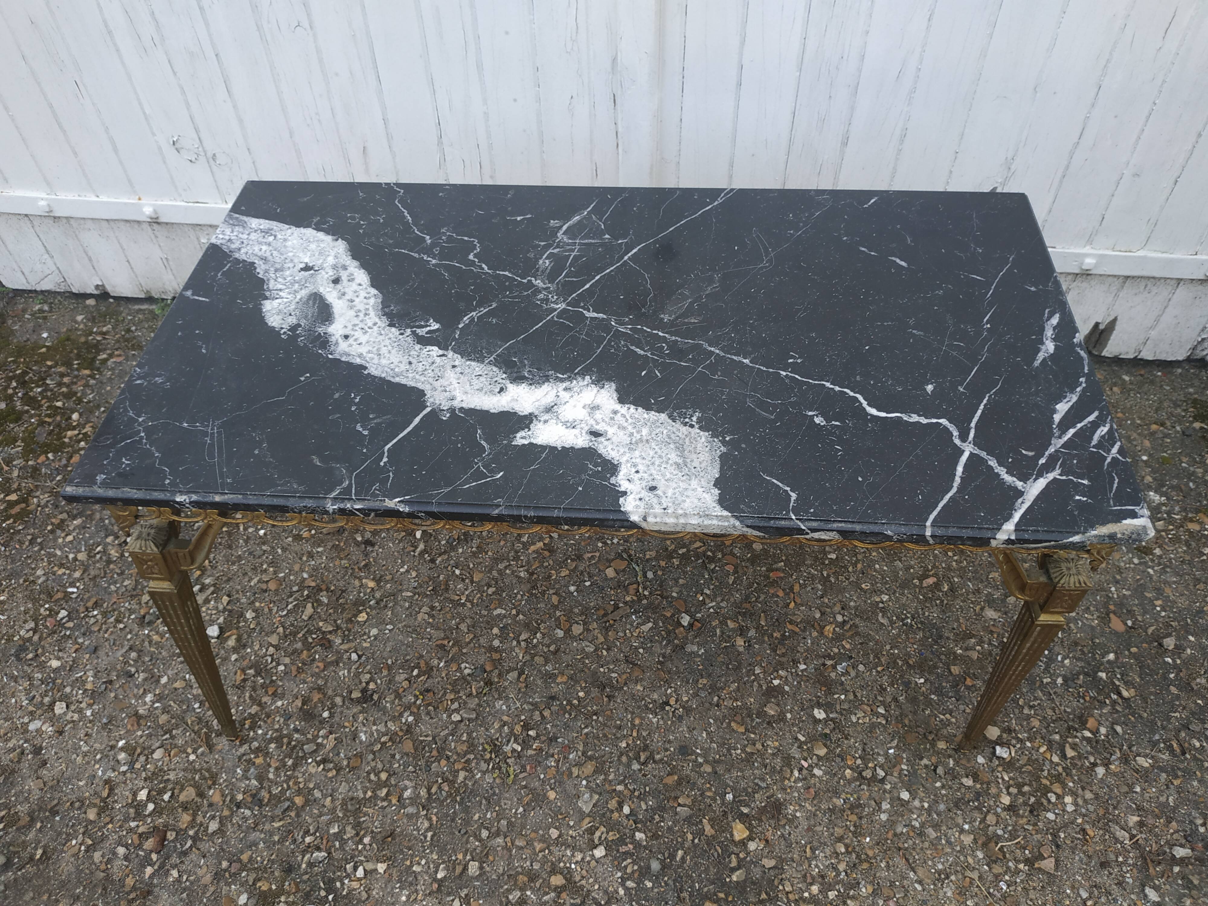 Black Marble Coffee Table Veined With Italian Style Italian Feet In Vintage Brass Selency